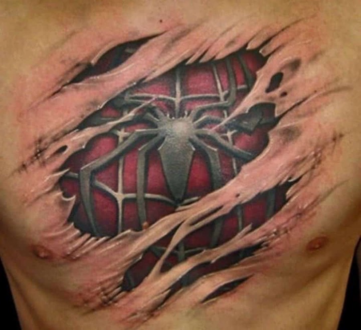 This spider tattoo looks so real that someone might end up trying to hit it off his shoulder. With the shadows, you would never guess this was just a tattoo.