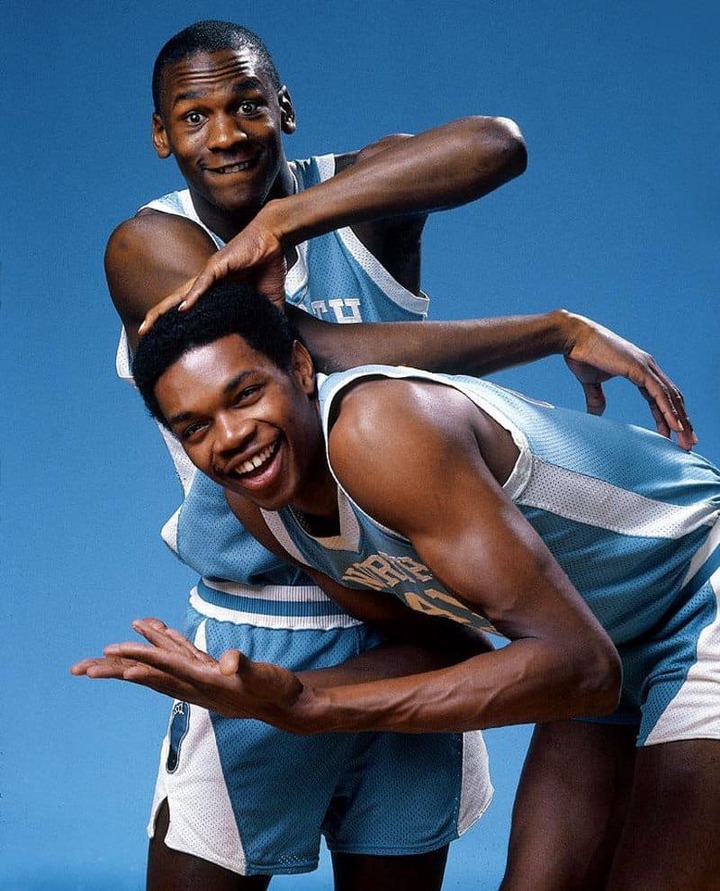 Jordan clowns around with his teammate, Sam Perkins, back in 1983 when he played with the North Carolina Tar Heels.